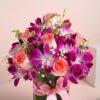 Flower Aura Premium Flower Bouquet of 12 Pink Roses & 4 Purple Flowers in a Glass Vase is a luxurious and elegant floral arrangement crafted to make every occasion extra special. This beautiful bouquet combines the soft charm of fresh pink roses with the rich, royal elegance of purple flowers, artistically arranged in a classy glass vase. Pink roses symbolize love, admiration, and grace, while purple flowers add a touch of sophistication and warmth. Perfect for birthdays, anniversaries, Mother’s Day, Father’s Day, and romantic celebrations, this premium arrangement doubles as a stunning home décor piece. Handcrafted with fresh, high-quality flowers and supported by same-day delivery, it’s an ideal gift to express heartfelt emotions with style and elegance.