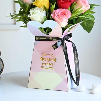 FlowerAura Premium Fresh Live Flower Bouquet of 10 Silky Mix Roses in a Box is a thoughtful and elegant floral gift, specially designed to celebrate birthdays and Mother’s Day. This premium arrangement features 10 fresh, silky-textured roses in beautiful mixed colors, artistically placed in a stylish gift box that adds a modern and luxurious touch. Each rose represents love, gratitude, respect, and warmth, making it a perfect gift for Mom, Maa, Mother-in-Law, Grandmother, Mummy, or Aai. Carefully handcrafted with high-quality live flowers, this bouquet creates a lasting emotional impression while enhancing home décor. With reliable same-day delivery, it’s an ideal way to express heartfelt appreciation and love right on time.