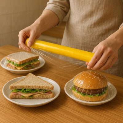 Food Grade Cling Wrap (100 m × 12 Inch) is a high-strength, transparent cling film designed to seal in freshness and protect food hygienically. Made from safe, food-grade material, it offers excellent stretch and strong cling for a tight seal around fruits, vegetables, sandwiches, bakery items, and prepared foods. Ideal for everyday kitchen storage and professional food packaging, this wrap helps prevent moisture loss and contamination while keeping contents visible. Easy to use and durable, it’s a reliable packaging roll for homes, bakeries, cafés, and restaurants.