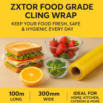 Be the first to review “Food Grade Cling Wrap 100m x 12 Inch | High Strength Cling Film | Food Freshness Seal | Suitable for Fruits, Veggies, Sandwich, Bakery | Kitchen Storage Solution | Packaging Roll”