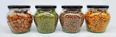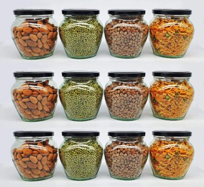Organize your kitchen or workspace in style with the SITOVI 400 ml Airtight Glass Jar Set (Pack of 6). Made from premium, non-toxic, BPA-free glass, these jars feature airtight black metal lids that keep contents fresh. Perfect for spices, herbs, dry fruits, jams, tea, coffee, crafts, or homemade candles.