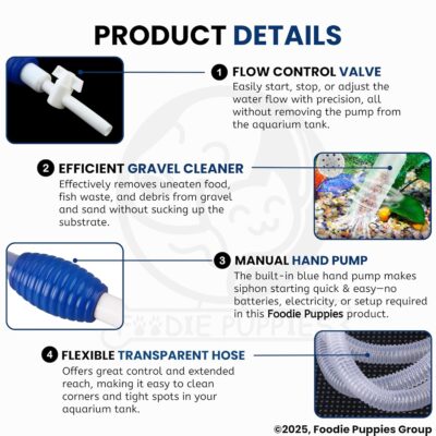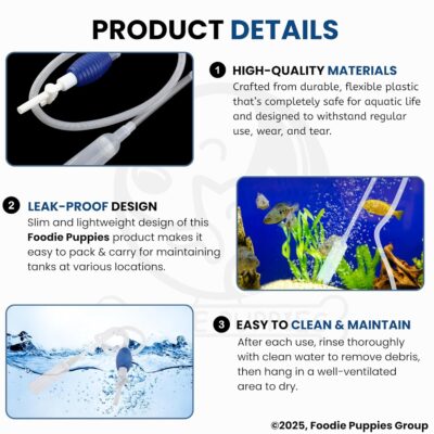 Crafted for ease of use, this kit helps remove debris, algae, and waste from the tank bottom, keeping the environment clean and healthy for your fish. Durable, lightweight, and practical, it’s an essential tool for every aquarium owner.