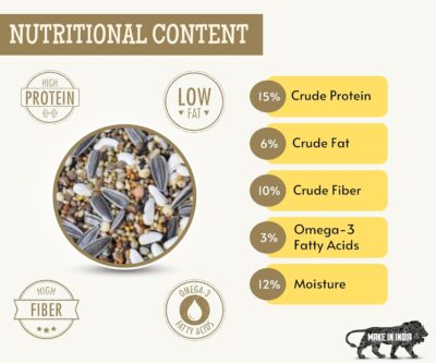 This blend is fortified with essential vitamins, minerals, protein, and omega-3 fatty acids, supporting healthy digestion, maximum nutrient absorption, strong immunity, and ideal body weight. Birds love its taste, thanks to favorite ingredients like canary seed and sunflower seed, making it a reliable daily food option.