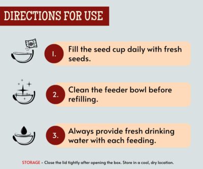 Free from chemicals and artificial colors, this food is 100% natural and safe. With favorite seeds like canary seed and striped sunflower seed, it is highly palatable, easily digestible, and gentle on your pet’s stomach.