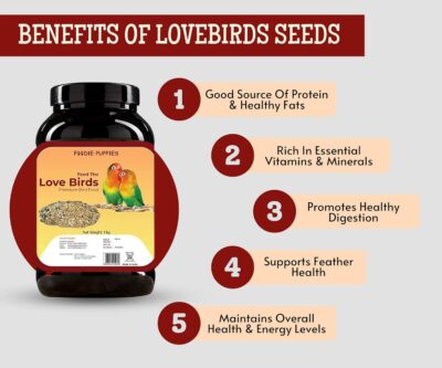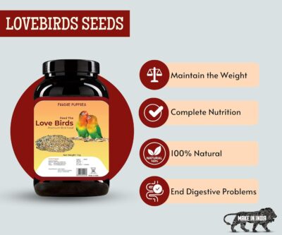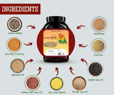 Give your lovebirds a balanced and natural diet with Foodie Puppies Premium Bird Food. Specially formulated with kangni, proso millet, browntop, oats, sunflower, niger, buckwheat, kusum, paddy, sorghum, and pearl grains, this seed blend is packed with essential vitamins, minerals, and natural nutrients for daily nutrition.
