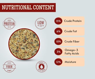 Designed to boost immunity, support healthy digestion, and maintain ideal body weight, this mix also helps improve feather health, fertility, and energy levels—keeping your birds vibrant and active at all life stages.