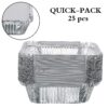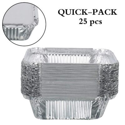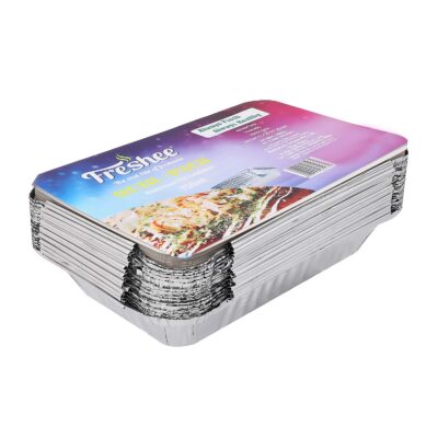 These Freshee aluminium silver foil containers are a versatile and hygienic food packaging solution ideal for everyday use as well as professional catering, food delivery, and party events. The set includes **two sizes — 450 ml and 750 ml — with 25 containers of each size, giving you a total of 50 disposable boxes perfect for a variety of portions and serving needs. Made from food-grade aluminium foil, these containers are leak-resistant and safe for storing both hot and cold foods, helping preserve freshness and flavors while preventing spills during transport. They come with secure fitted lids, making them especially convenient for meal prep, packed lunches, takeaways, wedding and party catering, and hotel or restaurant use. Their robust construction also allows you to freeze, store, reheat, bake, or roast food directly in the trays without transferring to another dish, saving you time and effort in the kitchen. The silver finish gives them a professional look while being lightweight, disposable, and recyclable, making cleanup quick and easy after use. Whether you’re preparing food for family meals, events, or delivery orders, this container set offers practical convenience with reliable performance.