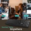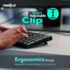 The ergonomic design includes adjustable clips that let you tilt the keyboard to a more natural typing angle, reducing wrist strain during long sessions.