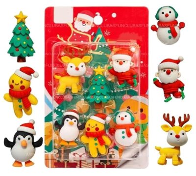 Fun Club Cute Cartoon Mini Eraser Merry Christmas Stationery Gift for Kids Kawaii Stationary for Kids Christmas Gifts School Stationery Kit Stationary Set School Gift (Pack of 6)
