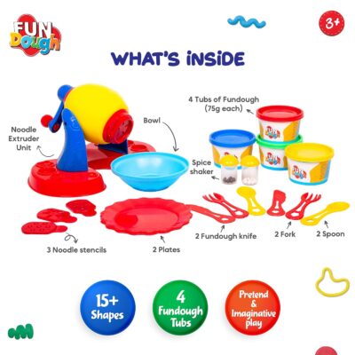 Fun dough Funskool Noodle Party, Play Set for Kid, 5 Colorful Dough Tubs of 75g Each (375g Total), Learning, Fun & Engaging Activity, Multicolour, Gift Set for Kids, Age 3+ Years