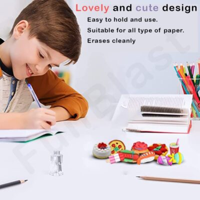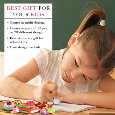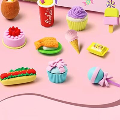 A fun and colorful set of 23 candy-themed erasers designed for kids. Stylish, high-quality, and perfect for school use, birthdays, prizes, and return gifts.