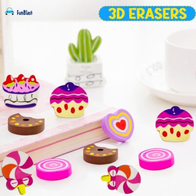 The FunBlast Eraser Set includes 12 cute and colorful fast food and ice-cream themed erasers that make studying more fun for children. Made from high-quality, non-toxic material, these kawaii-style erasers cleanly remove pencil marks without smudging and work smoothly on all types of paper. Ideal for drawing, sketching, homework, and school activities, these attractive 3D erasers are also great as return gifts, birthday goodies, or school rewards. A perfect addition to any child’s stationery collection.