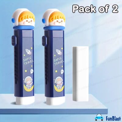 Cute space-themed cutter-style erasers made of soft, non-toxic material. Perfect for school use, gifting, classroom rewards, and birthday return gifts. Pack of 2 stylish and fun erasers.