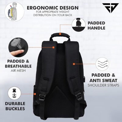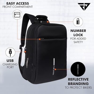 The FUR JADEN Anti Theft Number Lock Backpack Bag is a practical and stylish backpack designed for everyday use, travel, office, school, or college. It features a dedicated padded compartment that securely fits laptops up to 15.6 inches, helping protect your device during commuting or travel. Its anti-theft design with a customizable number lock adds an extra layer of security for your belongings when you’re in public places, making it ideal for students and commuters alike. The backpack also includes an external USB charging port that lets you charge your devices on the go by connecting a power bank inside without needing to hold it in your hand. Inside, multiple organizer pockets and compartments keep your accessories, documents, and gadgets neatly arranged, while padded shoulder straps and an ergonomic build ensure comfortable carrying even on long days. Made from durable material and weighing around 600 grams, it’s lightweight but sturdy enough for daily use across work, school, or travel.