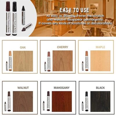 This Furniture Repair Kit is a comprehensive solution for restoring the natural beauty of wooden surfaces, featuring 13 pieces that include permanent markers and wax sticks in assorted brown shades. Designed for easy touch-ups and cover-ups, the kit effectively conceals scratches, stains, scuffs, and wear marks on wood floors, tables, cabinets, furniture, and more. The fine-tip markers allow precise color matching and detailed repair work, while the wax sticks fill deeper imperfections for a smooth, blended finish. Perfect for homeowners, carpenters, and DIY enthusiasts, this all-in-one repair set provides a quick, mess-free way to refresh and extend the life of your wooden items.