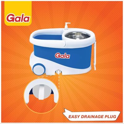 The Gala Jet Spin Mop is a powerful and convenient floor-cleaning system designed for fast, hygienic, and effortless mopping. It features a durable steel wringer that efficiently removes excess water, giving you better moisture control and quicker floor drying. The 360° rotating mop head easily reaches corners, edges, and under furniture for thorough cleaning. Equipped with big, smooth-rolling wheels, the sturdy bucket moves easily without lifting, reducing strain during cleaning. This mopping set includes 2 high-absorbency microfiber refill heads that effectively trap dust, dirt, hair, and spills while being gentle on surfaces like tiles, marble, granite, and other smooth floors. Finished in a classic white and blue design, the Gala Jet Spin Mop is ideal for homes and offices, combining durability, comfort, and superior cleaning performance for everyday floor care.