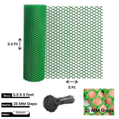 Garden Fence Outdoor (3.3 × 5 Feet) is a heavy-duty, UV-stabilized plastic net designed to provide reliable plant protection and garden safety. Made from virgin HDPE material with PVC nylon mesh, this 800 GSM strong net offers excellent durability, weather resistance, and long service life even under harsh outdoor conditions. It effectively acts as an anti-bird barrier, protecting plants, vegetables, and saplings from birds, animals, and external damage while allowing proper air circulation and sunlight. The net is foldable, flexible, and easy to install, making it suitable for home gardens, terraces, balconies, farms, nurseries, and fencing applications. Strong, reusable, and low maintenance, this garden fence net is a practical solution for safeguarding plants and maintaining a healthy, well-protected garden environment.