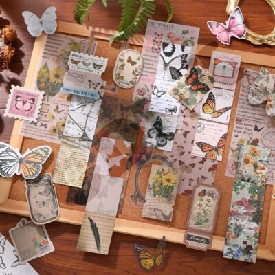 GDNK 346pcs Vintage Journal Scrapbook Pack Kit for Art Journaling Bullet, Planners DIY Paper Stickers, Craft Kits Notebook, Collage Album Aesthetic Sticker (Moonlight) (Brown Butterfly)