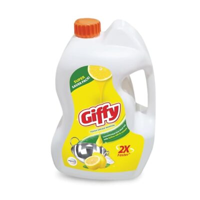 Giffy Liquid Dish Wash Gel – 5 L Refill Pack with Active Salt & Lemon is a heavy-duty kitchen cleaning solution designed to make dishwashing powerful, efficient, and pleasant. Its advanced formula is 50% more effective in tackling tough grease, stubborn food residues, and lingering odors, leaving utensils sparkling clean and fresh smelling every time. Infused with active salt and natural lemon fragrance, it not only cuts through grease quickly but also uplifts your senses with a refreshing scent. The gel produces easy lather and rinse-off, ensuring no white residues are left behind on your dishes. Gentle on hands yet tough on grease, this hand-safe dish wash gel combines deep cleaning performance with everyday convenience. The large 5 L refill size offers excellent value and long-lasting supply—perfect for families and regular kitchen use.