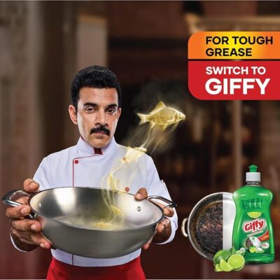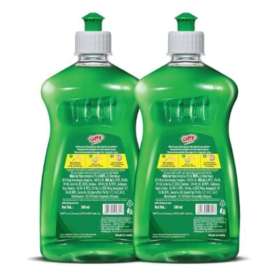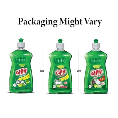 Giffy Liquid Dishwash Gel 500 ml (Pack of 2) – Green Lime and Active Salt is a powerful and refreshing kitchen cleaning solution designed to deliver effective grease removal and a fresh washing experience. Enriched with green lime and active salt, its advanced formula is 50% more effective at cutting through tough grease, stubborn food residues, and malodour compared to regular dishwashing liquids. With turbo boosters, this gel tackles heavy oil and grime quickly, while the mild fragrance leaves your utensils smelling pleasant and clean. The easy-lathering formula rinses off effortlessly without leaving unwanted residues, making dishwashing efficient and hassle-free. Gentle on hands yet tough on grease, this dishwash gel is hand-safe and ideal for everyday kitchen use.