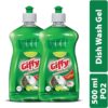 Giffy Liquid Dishwash Gel 500ml(Pack of 2) | Green Lime and Active Salt | 50% More Effective | Tough Grease Removal Expert | Turbo Boosters | Mild fragrance | Removes Tough Malodour | Hand-Safe
