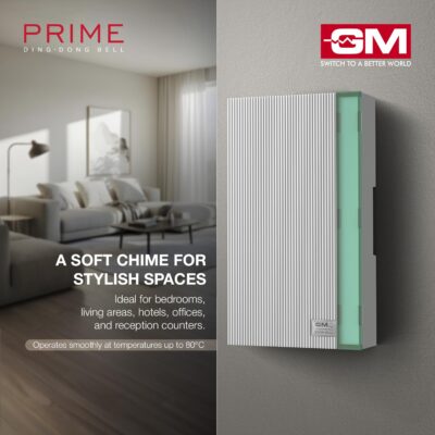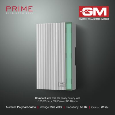 GM 4007 Ding Dong Door Bell operates on 240V AC power to ensure reliable and consistent performance. It produces a loud twin-tone ding dong sound that can be heard clearly across rooms. The safe and durable construction supports long-term use in residential environments. Its compact design allows for easy wall-mount installation without occupying much space. Designed for energy-efficient operation, it delivers dependable alerts with minimal power consumption. The clean white body blends seamlessly with a wide range of home interior styles.