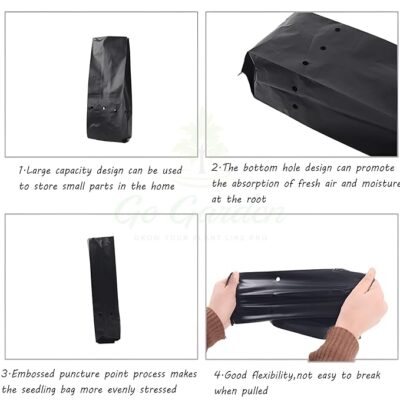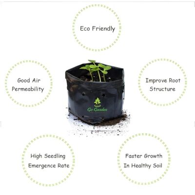 Go Garden 8 x 12 Inch Plastic Poly Grow Bags are durable and practical planting containers ideal for home gardens, terrace gardens, balconies, and plant nurseries. Made from high-quality, sturdy plastic, these grow bags provide excellent support for healthy root development and proper drainage, helping plants grow strong and well-aerated. Their convenient size is perfect for vegetables, flowers, saplings, herbs, and ornamental plants, making them suitable for a wide range of plantation needs. Lightweight, reusable, and easy to handle, these black grow bags are commonly used in nurseries and home gardening setups alike. Supplied in a value pack of 50, Go Garden Poly Grow Bags offer an economical and reliable solution for organized, space-efficient, and healthy plant cultivation.