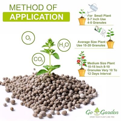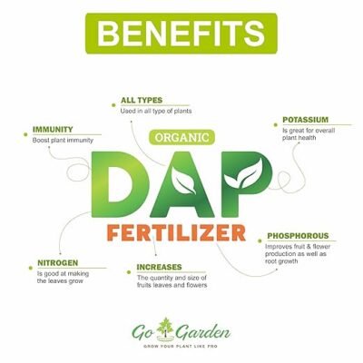 Go Garden All Purpose Bio DAP Fertilizer is a high-quality, 100% water-soluble fertilizer specially formulated to support healthy growth of home plants and garden crops. Enriched with bio-nutrients, this effective Bio DAP formulation promotes strong root development, better nutrient uptake, and vigorous plant growth. It plays a key role in enhancing flowering, fruit setting, and overall plant strength, while improving soil fertility over time. The fast-dissolving granules ensure quick absorption and uniform feeding through soil application or foliar spray. Ideal for potted plants, terrace gardens, vegetables, flowers, and ornamental plants, this 400-gram pack is easy to use and perfect for regular gardening needs, helping plants grow healthier, greener, and more productive naturally.
