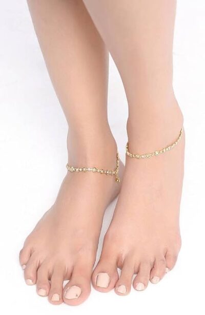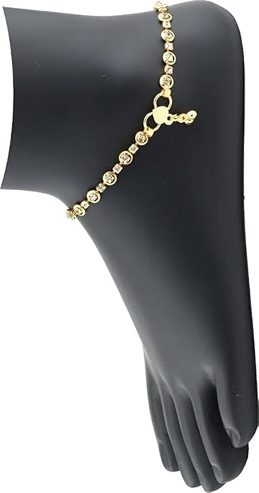 Gold-Plated Crystal Traditional Anklets/for Girls and Women | Elegant Alloy Design with Sparkling Crystals | Classic Indian Style with Gold Plating | Perfect for Festivals, Weddings
