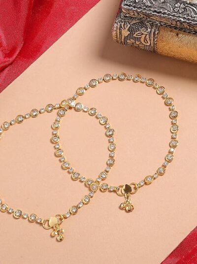 A perfect gifting option for birthdays, anniversaries, and festive celebrations, these gold-plated crystal anklets are a must-have accessory to complete your traditional jewellery collection with elegance and sparkle.