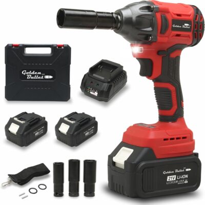 Golden Bullet Cordless Brushless Impact Wrench - 300 Nm Torque, 3.0Ah Li-ion Batteries, ?Square Drive 1/2 inch Drive (Cordless)