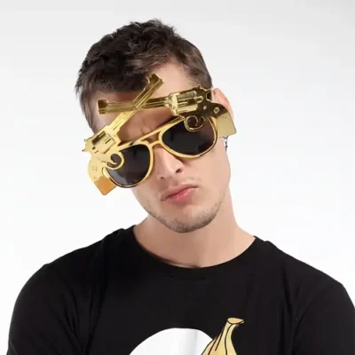 Bring out your inner cowboy with these bold and quirky Golden Revolver Party Shades! Designed with shiny golden frames and topped with a dramatic crossed-pistols motif, these glasses are a show-stopping accessory for wild west-themed parties, costume events, or bold fashion statements. Lightweight and fun, they’re perfect for those who dare to stand out.