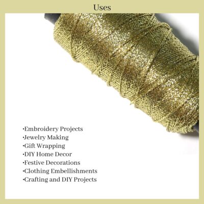 This 1MM golden Zari rope is ideal for crafts, embroidery, gift wrapping, hair accessories, macrame, jewelry making, and decorative embellishments.
