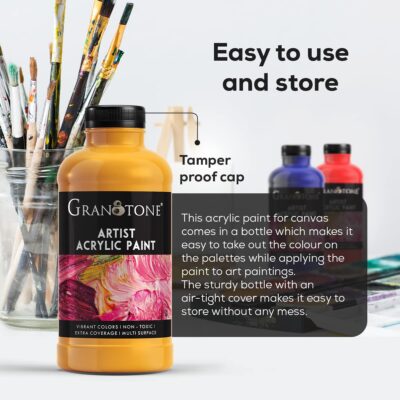 GRANOTONE Acrylic Colo1r (500 ml – Terracotta) is a premium-quality paint designed for art, craft, and DIY enthusiasts seeking rich, earthy tones. Formulated with highly pigmented, opaque colo1r, it offers excellent coverage, smooth application, and a durable, non-cracking finish. This versatile acrylic adheres beautifully to canvas, wood, leather, earthenware, metal, terracotta pots, and various craft surfaces, making it ideal for home décor projects, traditional artwork, and creative detailing. With its quick-drying and long-lasting formula, this 500 ml Terracotta acrylic paint delivers strong adhesion, natural texture, and professional results, perfect for artists, hobbyists, and crafters alike.