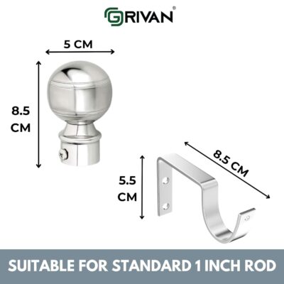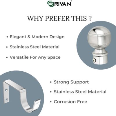 Bring both strength and style to your interiors with GRIVAN Stainless Steel Curtain Brackets, crafted with precision and premium-grade stainless steel. This set includes 6 pairs of sturdy brackets with designer finials, specially made for 1-inch curtain rods, ensuring a perfect fit and lasting performance.