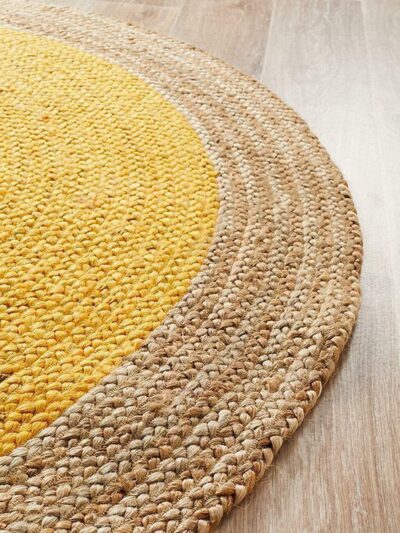 Habere India Pure Jute Round Rug – 3x3 ft (Yellow)