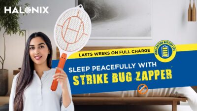 The Halonix Bug Zapper Mosquito Racquet features a powerful 400mAh rechargeable battery and instant-kill mesh, designed to eliminate mosquitoes quickly. Built with strong, durable plastic, it ensures long-lasting mosquito protection at home.