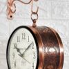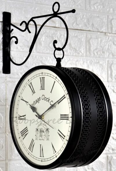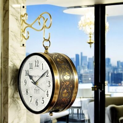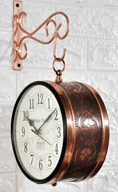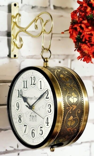 This Handcrafted Double-Side Analog Wall Clock combines durability and elegance with its iron body and golden finish. Featuring English numbers on both sides, it ensures clear visibility and comes with a 1-year warranty.
