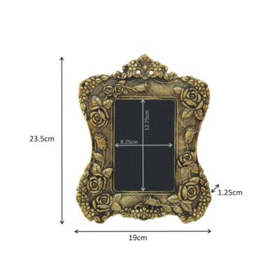Measuring 19 x 1.2 x 23.5 cm, it’s perfect for displaying your cherished photographs on a table, desk, or wall. The sturdy metal build ensures lasting durability, while the ornate design makes it a striking decorative piece.