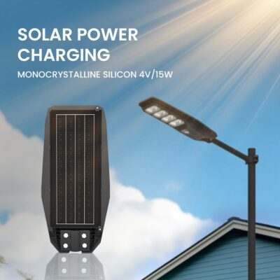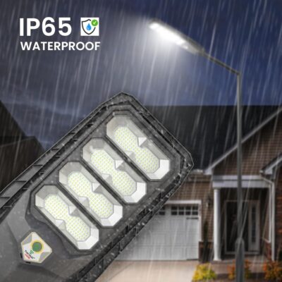 The Hardoll 400W All-in-One Solar Street Light delivers ultra-bright cool white illumination with a built-in motion sensor for enhanced security. Featuring a 15000mAh replaceable battery and remote control, it is designed for reliable outdoor use.