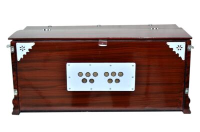Crafted in an elegant brown wooden finish, this harmonium combines durability with aesthetic appeal, making it ideal for spiritual events, parties, and cultural functions.