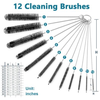 The kit includes 12 brushes of varying sizes to fit different diameters, ensuring every straw or tube is spotless. With flexible yet sturdy construction, these brushes make cleaning tight and hard-to-reach areas effortless.
