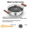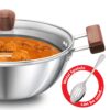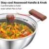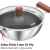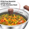 Triply stainless steel nonstick kadhai with rosewood handle, compatible with all stovetops. Durable, even cooking, and PFOA-free.