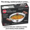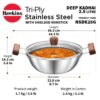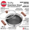 The Hawkins 2.5L Triply Stainless Steel Deep Kadhai features a PFOA-free nonstick surface shielded by stainless steel ridges, ideal for metal spatulas. Its 3 mm thick body ensures even heat distribution. With a cool-touch rosewood handle, induction compatibility, and sturdy rivets, it’s perfect for deep-frying and everyday cooking.