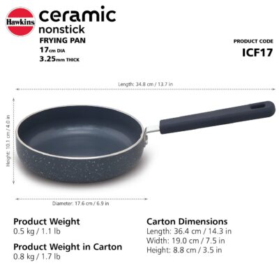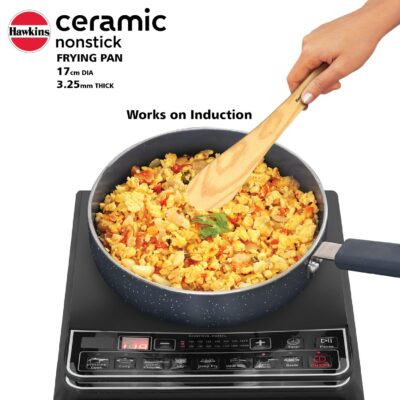 Hawkins 16 cm ceramic nonstick frying pan ensures healthy, fast cooking on all stovetops with minimal oil use.