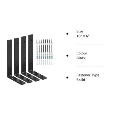 Upgrade your shelving setup with these Heavy Duty L Shelf Brackets (6″ x 4″), crafted from 5mm thick solid steel for maximum strength and reliability. Each bracket supports up to 85 lbs, making them ideal for floating wood shelves in kitchens, bedrooms, offices, or commercial spaces.