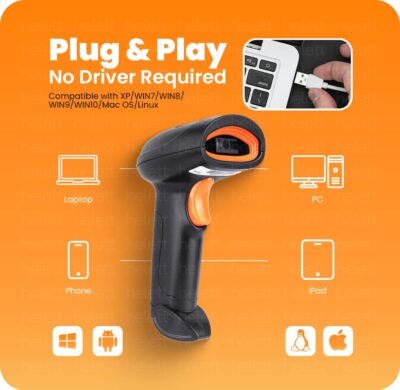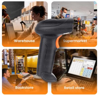 The Helett HT20 Wireless 2.4GHz 2D & 1D Barcode Scanner is a versatile and efficient scanning solution ideal for retail stores, supermarkets, warehouses, inventory management, and POS systems. It features advanced imaging technology that can quickly and accurately read both 1D barcodes and 2D codes (such as QR codes) from printed labels and mobile screens, enhancing workflow and reducing checkout times. Equipped with dual connectivity — 2.4 GHz wireless for flexible movement up to a significant range and USB wired mode for stable, plug-and-play operation — this scanner adapts to different work environments without needing drivers. The built-in 2200 mAh rechargeable battery supports long-lasting use (up to ~12 hours on a single charge), and the induction auto-sensing technology enables hands-free scanning when barcodes are presented to the sensor, boosting productivity in high-volume situations. Designed with a durable ABS body and integrated illumination light for reliable performance even in low-light conditions, this scanner is comfortable to hold and rugged enough for daily use. Its broad compatibility with Windows, Mac, Linux, and many POS systems makes setup simple and seamless — perfect for modern business environments.
