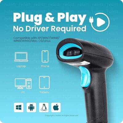 The Helett HT410 Barcode & QR 2D & 1D Wired Handheld Scanner is a versatile and reliable scanning solution ideal for retail, inventory management, warehouses, offices, and POS systems. It features a high-performance 2D camera-based scanning engine that can quickly and accurately decode both 1D and 2D barcodes, including standard linear codes and QR codes — whether printed on labels or displayed on screens like phones and tablets. The scanner supports induction (auto) scanning, allowing it to detect and scan barcodes as soon as they’re presented, improving workflow efficiency in high-volume environments. In addition, customizable suffix settings let you tailor how scanned data is output (such as adding a carriage return or tab), ensuring smooth integration with various POS, inventory, or accounting systems. With USB plug-and-play connectivity, it’s easy to set up on Windows, macOS, or Linux without needing extra drivers. The ergonomic handheld design offers a comfortable grip for extended use, and the rugged build is suited for daily professional scanning tasks.