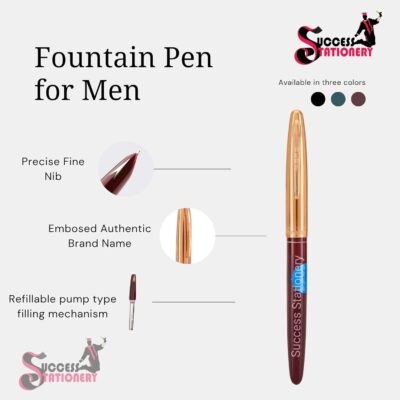 This Hero Pen Original Fountain Pen set delivers a smooth and consistent writing experience with its high-quality iridium tip nib built for durability and precision. The elegant gold arrow pattern paired with a gold trim cap enhances its premium, timeless look. Each pen is fully refillable, making it a cost-effective and sustainable option for regular use. The pack includes three classic colors—black, green, and maroon—suitable for professional settings, personal journaling, and gifting. Its sturdy construction ensures long-lasting performance, even with daily writing. The ergonomic design provides a comfortable grip, reducing hand fatigue during extended writing sessions. A perfect choice for men who appreciate a blend of sophistication, utility, and traditional fountain pen charm.