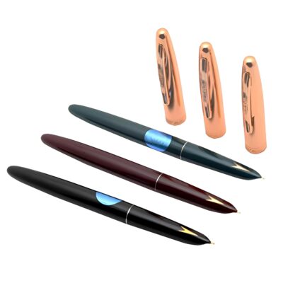 This Hero Original Fountain Pen set features a smooth iridium tip nib for effortless, refined writing performance. Designed with a gold arrow pattern and gold trim cap, it includes pens in black, green, and maroon.